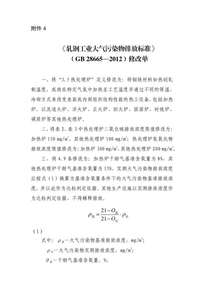 七、軋鋼工業(yè)大氣污染物排放標(biāo)準(zhǔn)(GB 28665-2012)修改單