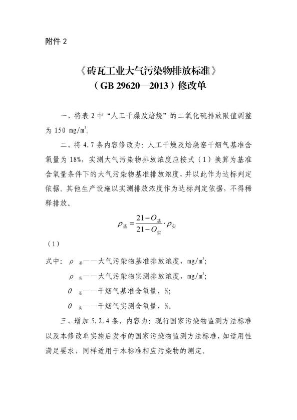 五、磚瓦工業(yè)大氣污染物排放標(biāo)準(zhǔn)(GB 29620-2013)修改單