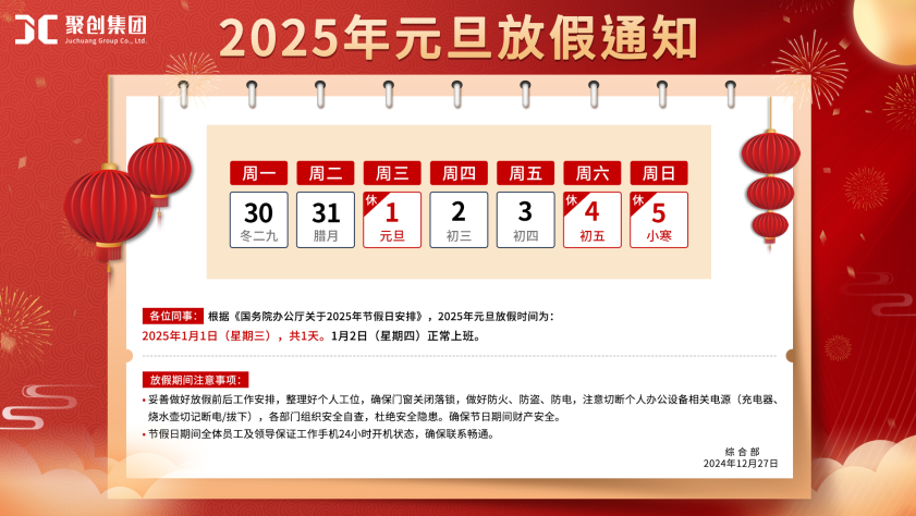 聚創(chuàng)集團(tuán)全體員工祝您2025元旦快樂(放假通知)