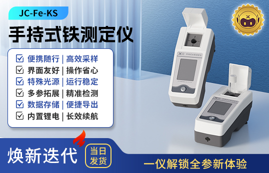 聚創(chuàng)JC-Fe-KS型手持式鐵測定儀采用鄰菲啰啉分光光度法,具有體積小、重量輕、操作簡便、靈敏度高等特點??梢詮V泛用于發(fā)電廠、純凈水廠、自來水廠、生活污水處理廠、飲料廠、環(huán)保部門、工業(yè)用水、制酒行業(yè)等部門鐵參數(shù)的測定,從而達到規(guī)定的水質(zhì)標(biāo)準。