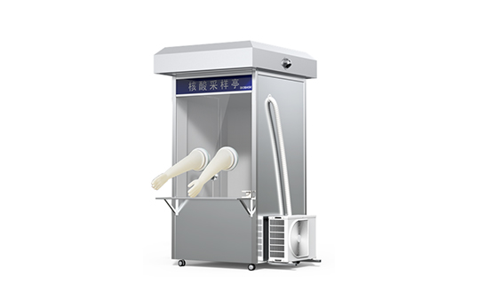 核酸采樣亭 是一款專為咽拭子和鼻拭子取樣工作設(shè)計的產(chǎn)品。設(shè)備通過配置的通風凈化系統(tǒng)將潔凈安全的 空氣送入內(nèi)部空間,并使內(nèi)部保持相對正壓狀態(tài)。通過構(gòu)建隔離的正壓空間,從而使艙體內(nèi)部空氣與外部隔離 ,避免外部空氣進入艙體內(nèi)部,進而有效保護內(nèi)部醫(yī)護人員的安全,避免其因采樣工作而受到感染。保證安全 的同時,提升醫(yī)護人員的操作靈活性和舒適度,節(jié)省了檢測時間,提高了檢測效率。