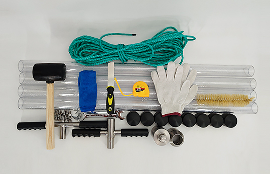 配重×3,尾翼×1,外六角螺絲套裝×6,繩子×1,不銹鋼套管×1,切割頭×1,不銹鋼固定裝置×1,采樣管×4,管帽×8,樣品推出器×1,鏟刀×1,扳手×2,手套×1,鋼卷尺×1,刷子×1,抹布×1,鋁合金箱×1
