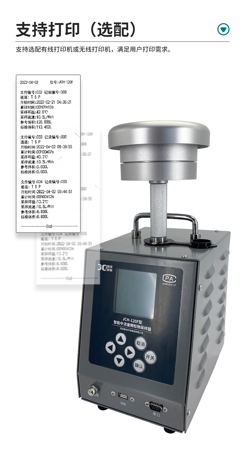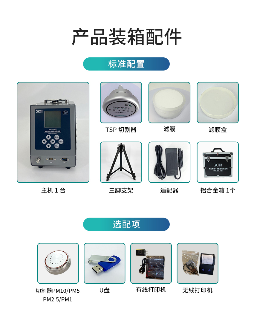 主要參數(shù) 參數(shù)范圍 分辨率 準(zhǔn)確度 采樣流量 (60~130)L/min 1L/min 優(yōu)于±2% 采樣時(shí)間 10s~99h59min59s 1s 優(yōu)于±0.2% 采樣次數(shù) 1~999 次 間隔時(shí)間 <99h59min59s 最大采樣體積 99999.9L 計(jì)前壓力 (-12.5~0)Kpa 0.1Kpa 優(yōu)于±2.5% 大氣壓 (1~120)Kpa 0.1Kpa 優(yōu)于±2.5% 工作溫度 (-20~+70) ℃ 0.1℃ 優(yōu)于±1℃ PM2.5切割特性 Da50 = (2.5±0.2)μm σg = (1.2±0.1) μm PM10切割特性 Da50 = (10±0.5)μm σg = (1.5±0.1) μm 有效濾膜直徑 Ф90mm 外形尺寸 265mm×170mm×260mm 整機(jī)重量 JCH-120F-1:約7.4kg;JCH-120F-2:約9.2kg
