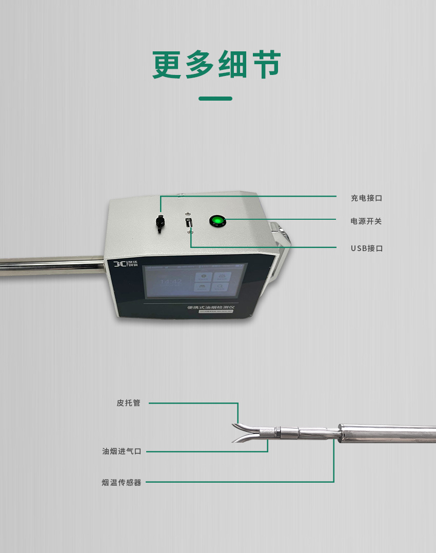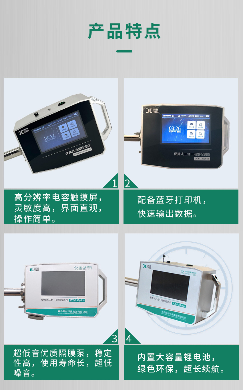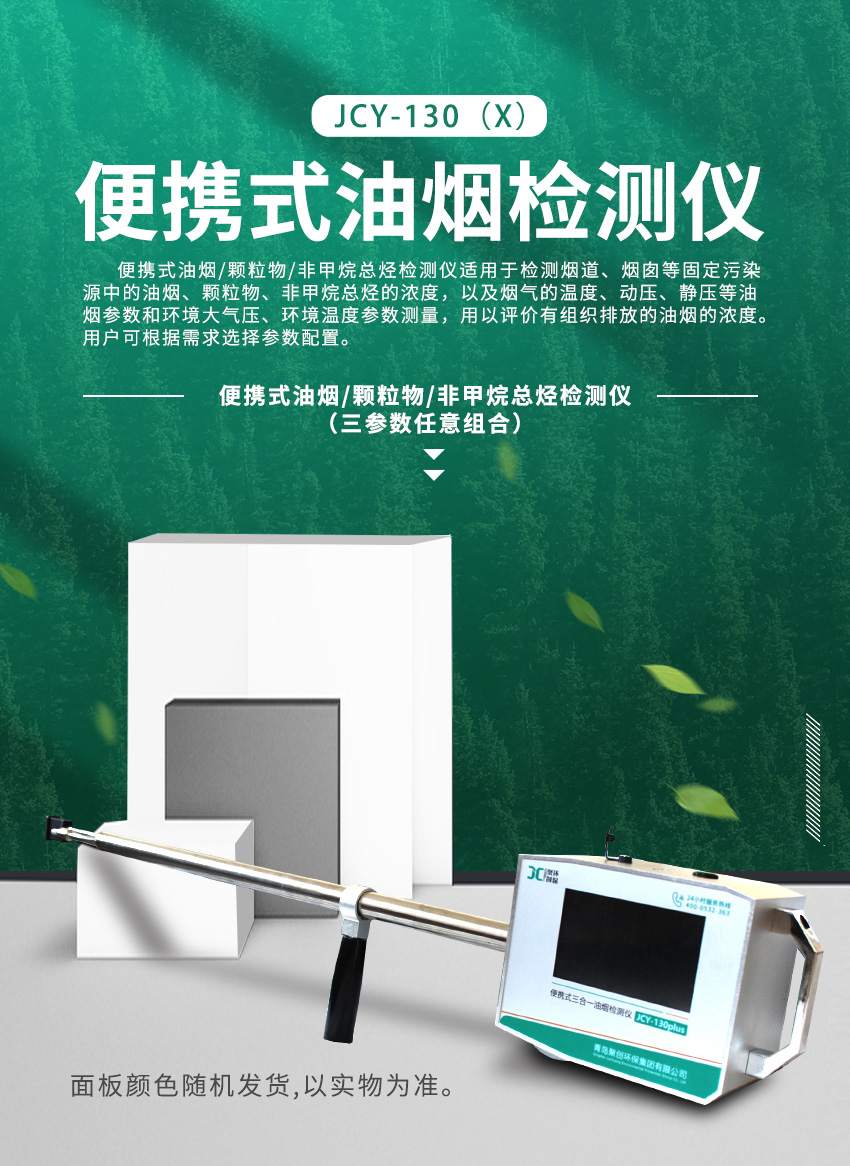 一、儀器描述 JCY-130(X)便攜式油煙檢測儀(以下簡稱檢測儀)是主要用于采集煙道、煙囪中的油煙排放濃度。該檢測儀滿足JJG 680-2007《煙塵采樣器檢定規(guī)程》、JJG 518-1998《皮托管檢定規(guī)程》、GB16157-1996《固定污染源排氣中顆粒物測定與氣態(tài)污染物采樣方法》、HJ/T48-1999《煙塵采樣器技術(shù)條件》、GB18483《飲食業(yè)油煙排放標準》的要求,產(chǎn)品性能穩(wěn)定、操作方便、小型便攜、流量穩(wěn)定,大大減少了勞動強度。 二、適用范圍 JCY-130(X)便攜式油煙檢測儀具有便攜性強、精準度高、實時性好、操作簡便、多功能性和數(shù)據(jù)記錄與傳輸?shù)葍?yōu)勢,并且具備廣泛的應(yīng)用場景,是餐飲油煙治理的重要工具之一。廣泛應(yīng)用于餐廳、飯店、機關(guān)食堂等單位的烹飪油煙排放濃度檢測,亦可用于工業(yè)非食用油煙(瀝青煙、松香煙等)的排放濃度檢測。適用于環(huán)境監(jiān)測、監(jiān)察部門、城市管理行政執(zhí)法(城管)部門、高校、科研院所等場所的油煙排放監(jiān)測和管理。 三、適用標準 1.JJG 680-2007《煙塵采樣器檢定規(guī)程》 2.JJG 518-1998《皮托管檢定規(guī)程》 3.GB16157-1996《固定污染源排氣中顆粒物測定與氣態(tài)污染物采樣方法》 4.HJ/T48-1999《煙塵采樣器技術(shù)條件》 5.GB18483《飲食業(yè)油煙排放標準》 四、使用環(huán)境 1.工作電源:DC16.8V 2A; 2.環(huán)境溫度:(-20~70)℃; 3.環(huán)境濕度:(0~95)%RH無凝結(jié); 4.大氣壓力:(70~130)kPa; 5.野外工作時,應(yīng)有防雨、雪、塵以及日光曝曬等侵襲的措施。