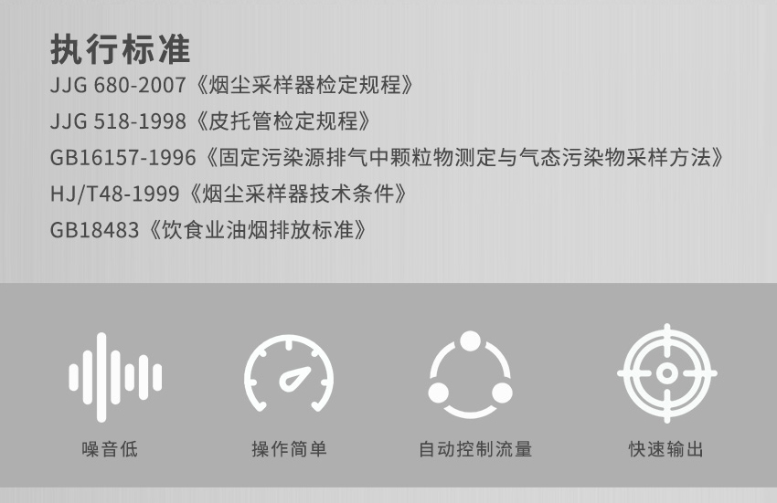 1、現(xiàn)場操作簡單,5分鐘左右可出數(shù)據(jù)。 2、電子流量計自動控制流量,1L/min流量無波動。 3、使用高性能超低音進口隔膜泵,極大提高穩(wěn)定性,使用壽命長、超低噪音。 4、根據(jù)皮托管測量流速、排量。 5、可以測量煙溫、靜壓、動壓。 6、使用高分辨率電容觸摸屏、靈敏度高、界面直觀,操作簡單。 7、配備藍牙打印機,快速輸出數(shù)據(jù)。 8、具有U盤導出功能,自動生成表格,便于數(shù)據(jù)處理。 9、內(nèi)置鋰電池,滿足用戶充電需求。 10、大容量數(shù)據(jù)存儲,高可存儲8000組數(shù)據(jù)。 11、除油煙濃度外,還可檢測顆粒物和非甲烷總烴的濃度。