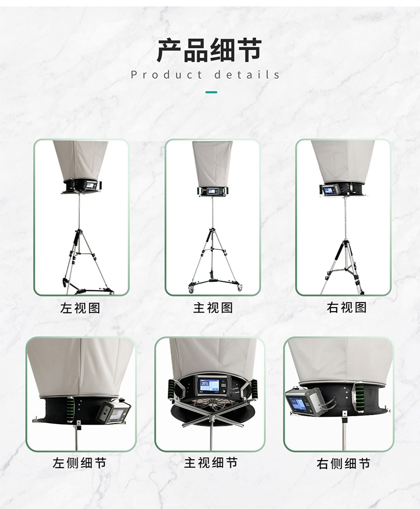 8.升高高度:支架210cm,風(fēng)罩高度90cm,整體可升高至300cm 。