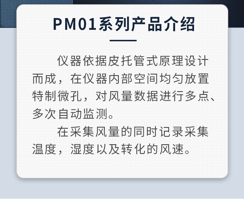 聚創(chuàng)PM01(S)型風(fēng)量罩(以下簡稱風(fēng)量罩)采用皮托管式原理,對風(fēng)壓進(jìn)行多點、多次自動檢測,產(chǎn)生平均風(fēng)量(m3/h),具有正確、快速、簡便的特點,廣泛應(yīng)用于暖通空調(diào)、凈化技術(shù)等行業(yè)進(jìn)行風(fēng)口和管道風(fēng)量的直接測定,從而對集中空調(diào)的風(fēng)量實施綜合管理及溫度、濕度、潔凈度等參數(shù)的自動控制。