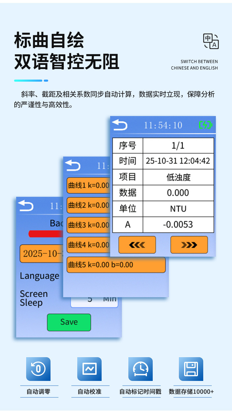 9.自定義曲線:每個檢測參數(shù)可自定義5條曲線;