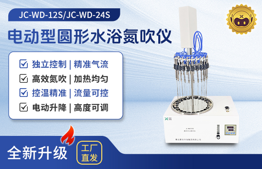 聚創(chuàng)JC-WD-12S/24S型電動(dòng)型圓形水浴氮吹儀采用水浴恒溫加熱的方式,將氮?dú)饪焖?、連續(xù)、可控地吹入加熱的樣品表面從而將樣品進(jìn)行濃縮,這種方法省時(shí)、操作方便、容易控制。